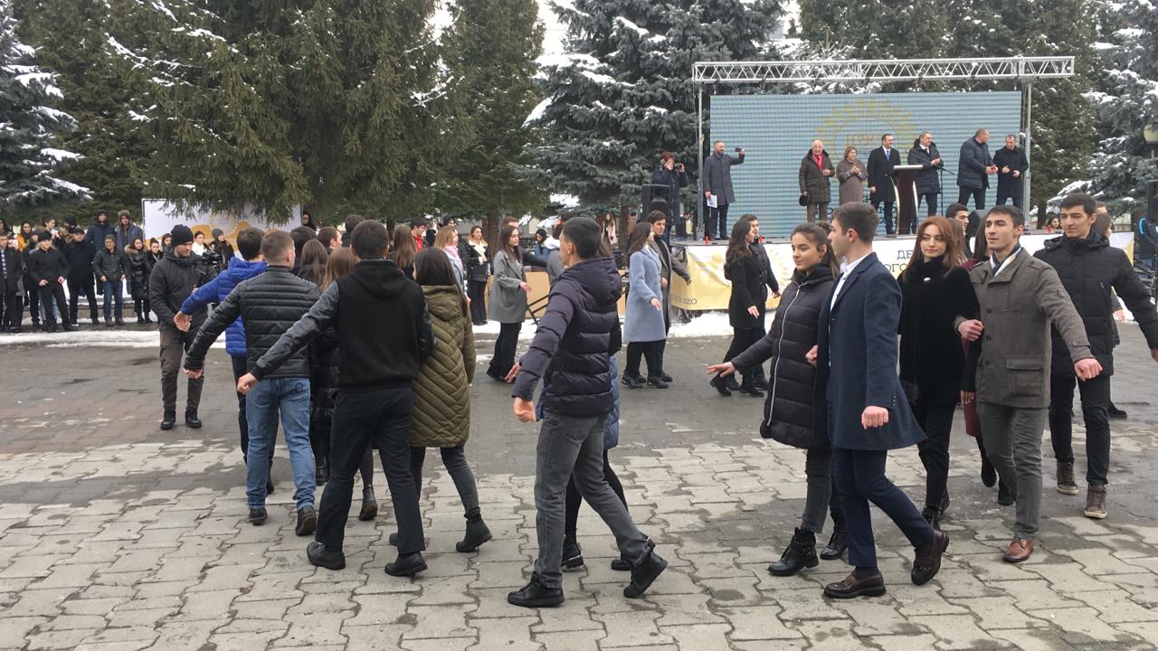 В СОГУ прошли массовые гуляния, посвященные Дню российского студенчества – Татьяниному дню. Мероприятия начались с вручения благодарственных писем сотне лучших студентов университета. Центром праздника по традиции стал двор вуза. Торжества начались с возложения цветов к памятнику студентам, ушедшим на фронта Великой Отечественной. Старт праздничным мероприятиям дал ректор СОГУ Алан Огоев. Сегодняшние торжества официально открыли юбилейный для вуза год – университет в 2020 году отметит свое 100-летие. Для гостей организовали разнообразные тематические площадки, где каждый мог заработать оценку в свою импровизированную зачетку. Победителям конкурсов вручали сувениры с символикой вуза. А еще – фотозоны, танцы, песни, театрализованные представления и впервые – выставка военной техники. Согревали студентов горячим чаем и свежеиспеченными пирогами.