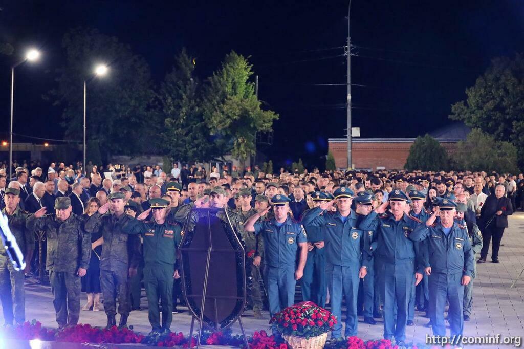 Сегодня траурные мероприятия начнутся с поминальных богослужений в двух крупных церквях республики – в храме Пресвятой Богородицы и Святой Троицы. В селе Итрапис Дзауского района откроют памятник Герою России, летчику Владимиру Едаменко. Затем пройдет церемония возложение цветов к местам гибели защитников Отечества. Траурная акция сегодня пройдет также во Владикавказе. В 20:00 свечи памяти зажгут у собора святого Георгия.