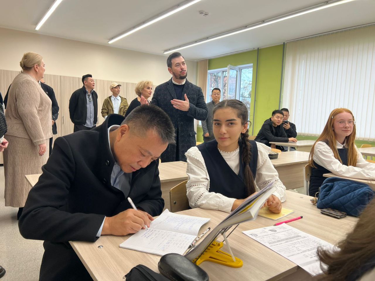 Кроме того, делегация посетила школу №11 – единственную в городе, где изучается китайский язык. Школьникам удалось пообщаться с носителями языка, узнать больше о зарождении и формировании китайской письменности. В школе делегатам показали классы управления беспилотными летательными объектами и секцию волейбола. А руководитель кружка национальных танцев, заслуженный артист РФ Нодар Плиев научил гостей танцевать симд.