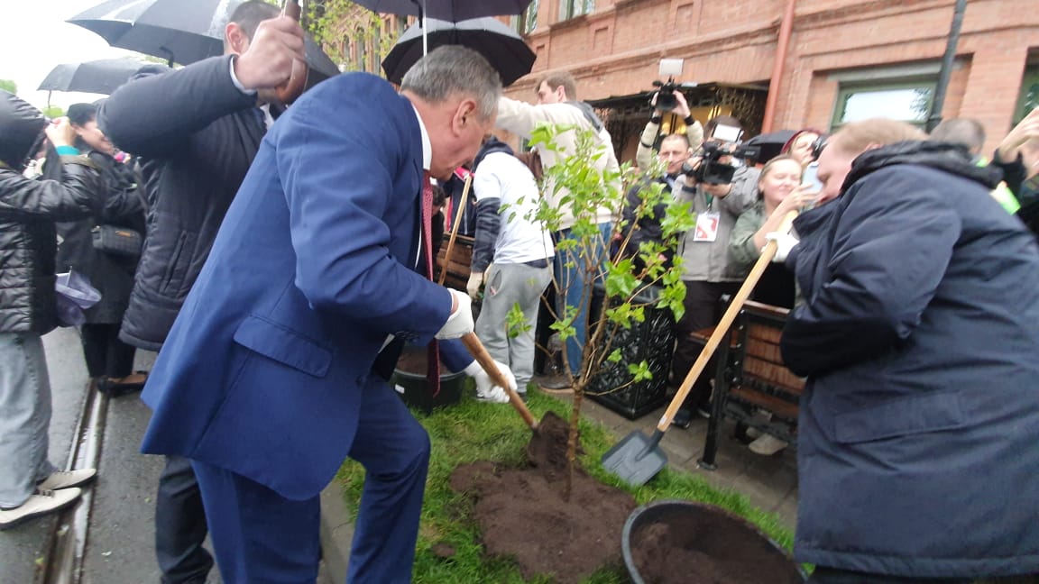 Перед зданием сегодня высадили кусты сирени – любимого цветка режиссера