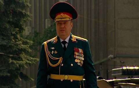 Парадом командовал заместитель командующего 58-й армией Евгений Никифоров. Принимает Парад командующий Андрей Гурулев.